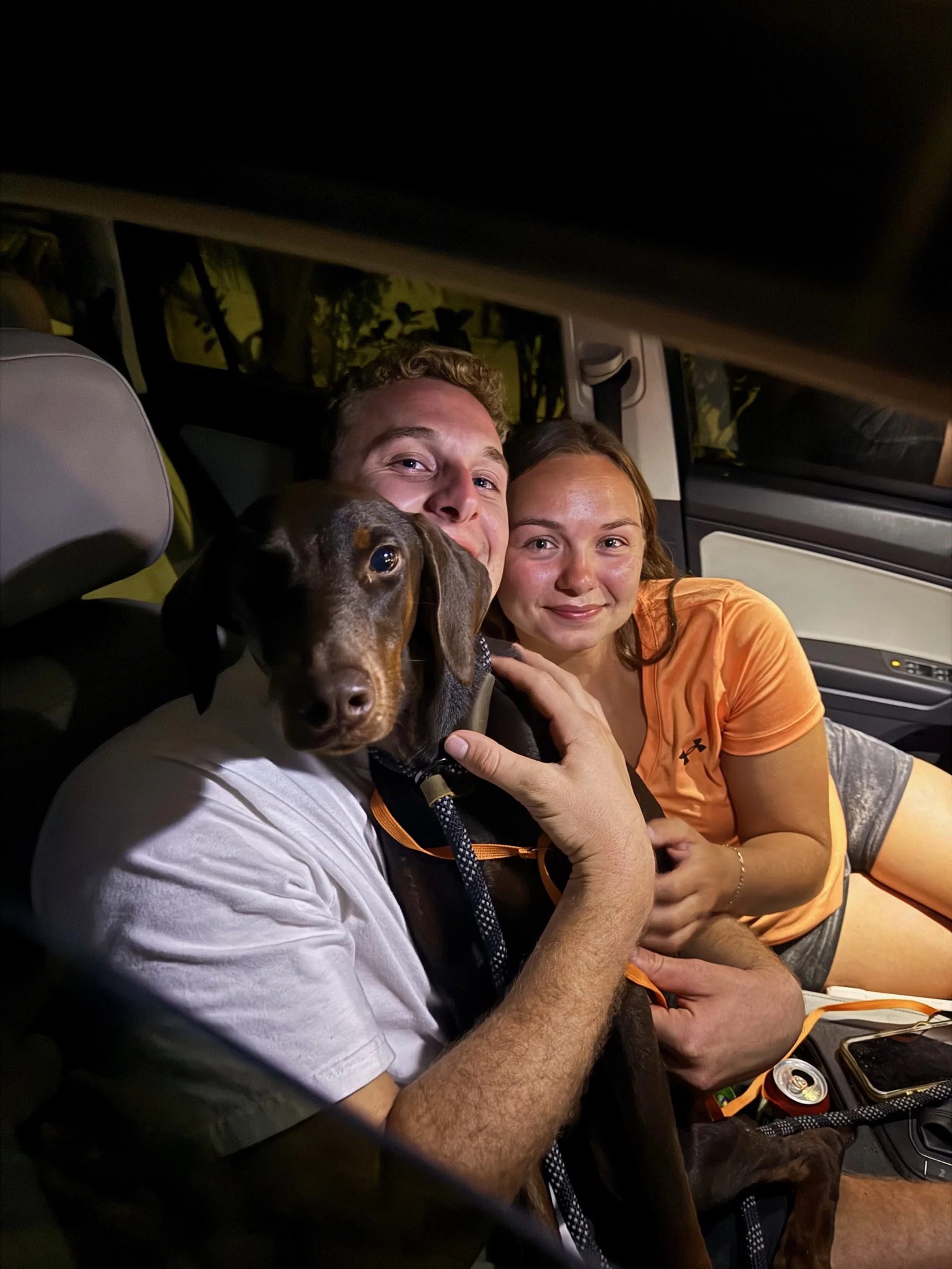 This is Mya. She was missing for 9 days before she was found. Mya was on the beach with her owners when a gust of wind came a blew their beach umbrella which scared her. Mya ran and wound up getting lost in some mangroves. Her owners searched for days and put up signs everywhere and blasted social media with her loss. They also got a pet rescue/trapper involved. Several drones were used to search for her but she wasn’t found in the area. I personally searched on two different days with no luck. Then on night eight of her being missing, someone spotted her and she was also seen on a game camera which was a great sign. On night nine I flew my thermal drone for about an hr until the rain started which at that point I had to land. While sitting in my truck waiting for the rain to stop, I spotted Mya come out of the dark. I notified the owners, who were watching a trap, that she was headed their way. I immediately got the drone up as the rain had just stopped. I was able to follow Mya until she finally saw her owners and jumped into their car. I couldn’t be happier to see them reunited after 9 days being missing.
